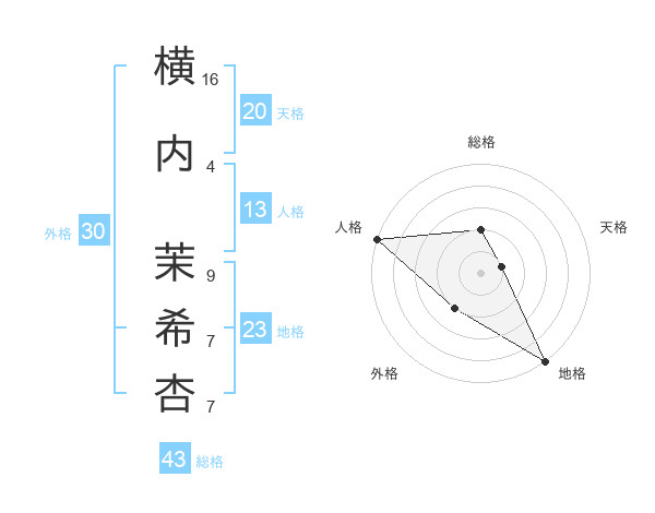 横内 茉希杏さんを姓名の画数から五運を鑑定