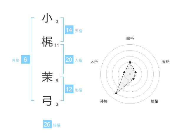 小梶 茉弓さんを姓名の画数から五運を鑑定