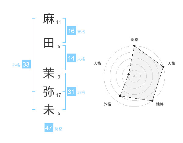 麻田 茉弥未さんの総格は47画の5点!