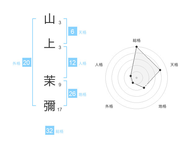 山上 茉彌さんを姓名の画数から五運を鑑定