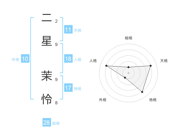 二星 茉怜さんを姓名の画数から五運を鑑定