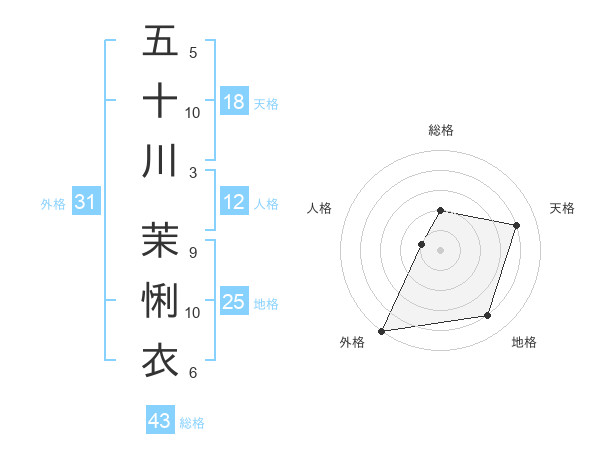 五十川 茉悧衣さんを姓名の画数から五運を鑑定