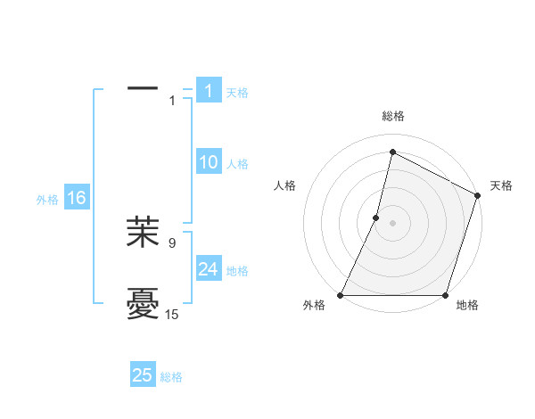 一 茉憂さんの天格は1画の5点!