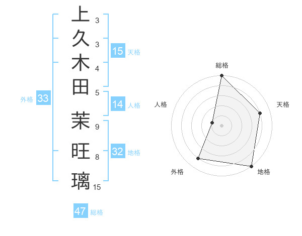 上久木田 茉旺璃さんの総格は47画の5点!