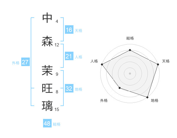 中森 茉旺璃さんの総格は48画の4点!