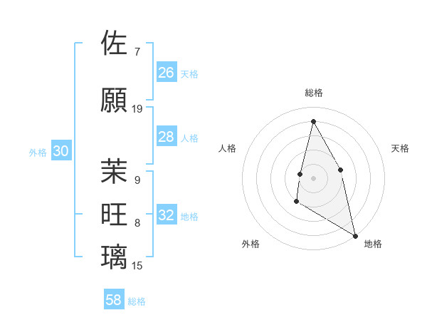 佐願 茉旺璃さんを姓名の画数から五運を鑑定