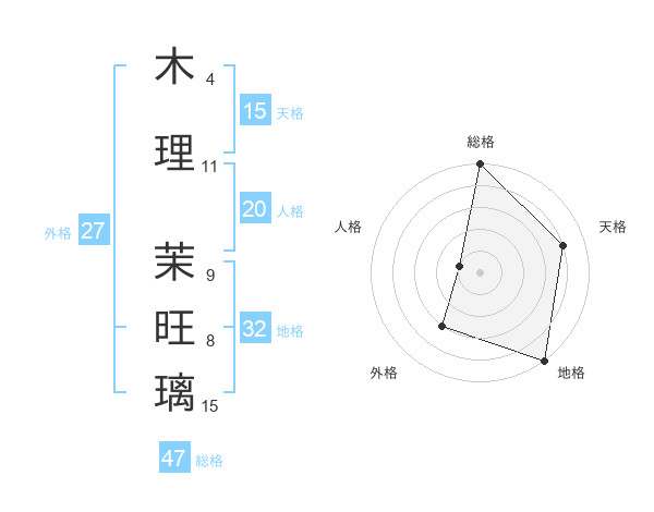 木理 茉旺璃さんを姓名の画数から五運を鑑定
