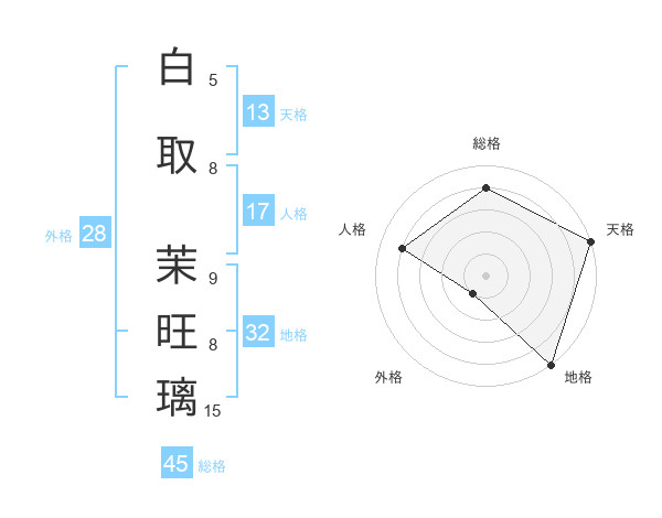 白取 茉旺璃さんの総格は45画の4点!
