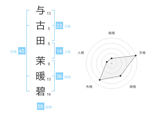 与古田 茉暖碧さんの外格は45画の4点!