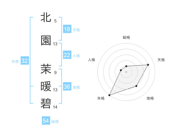 北園 茉暖碧さんを姓名の画数から五運を鑑定