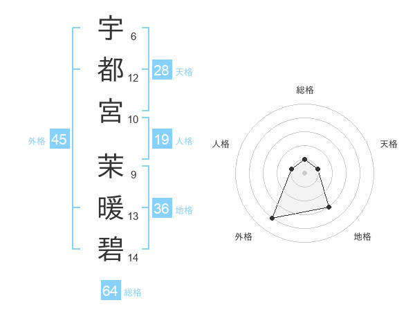 宇都宮 茉暖碧さんを姓名の画数から五運を鑑定