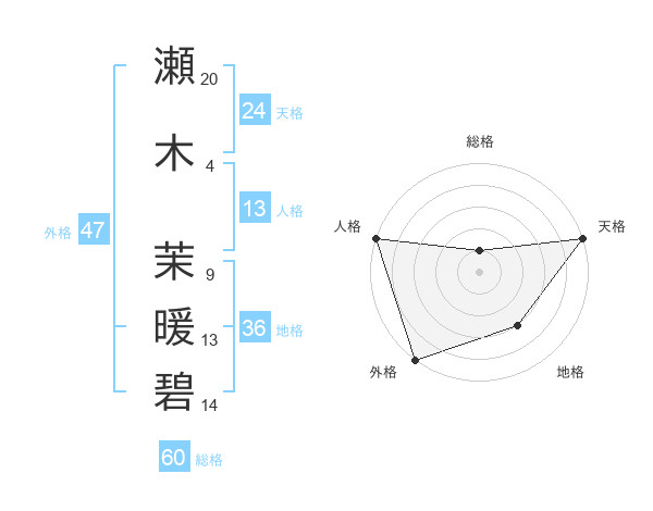 瀬木 茉暖碧さんを姓名の画数から五運を鑑定