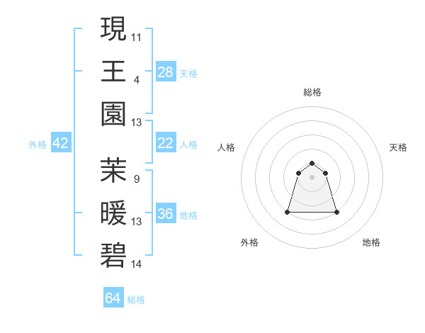 現王園 茉暖碧さんの外格は42画の3点!