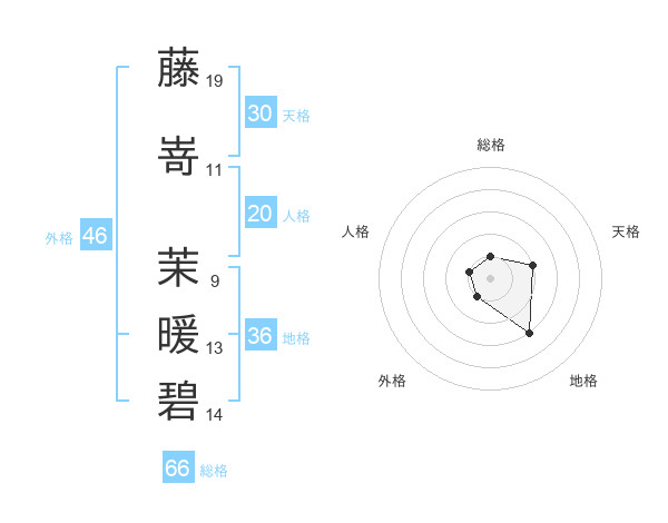 藤嵜 茉暖碧さんの総格は66画の1点!