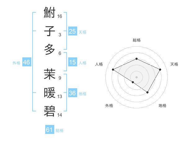 鮒子多 茉暖碧さんの総格は61画の3点!