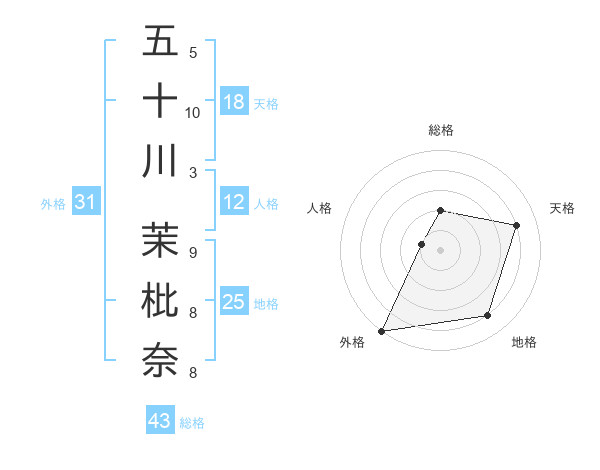 五十川 茉枇奈さんを姓名の画数から五運を鑑定