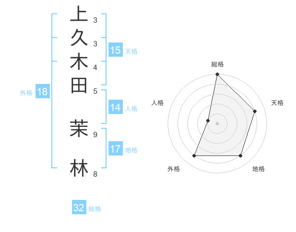上久木田 茉林さんを姓名の画数から五運を鑑定
