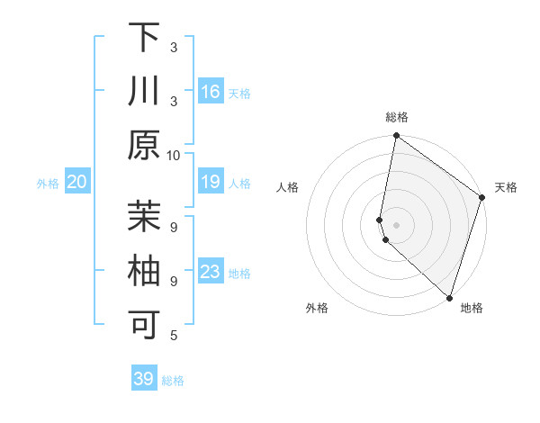 下川原 茉柚可さんを姓名の画数から五運を鑑定