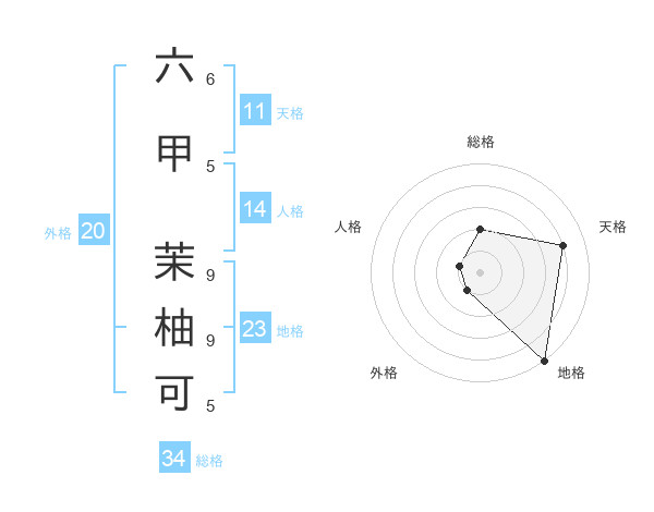 六甲 茉柚可さんの地格は23画の5点!