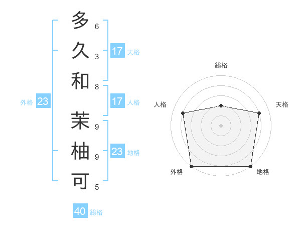 多久和 茉柚可さんの地格は23画の5点!