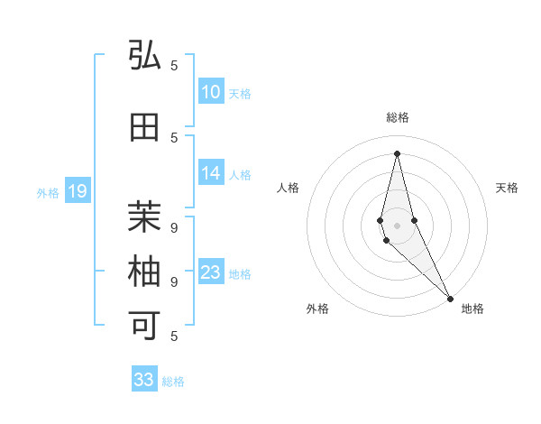 弘田 茉柚可さんの地格は23画の5点!