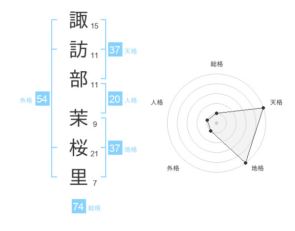 諏訪部 茉桜里さんの天格は37画の5点!