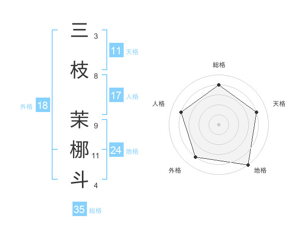 三枝 茉梛斗さんを姓名の画数から五運を鑑定