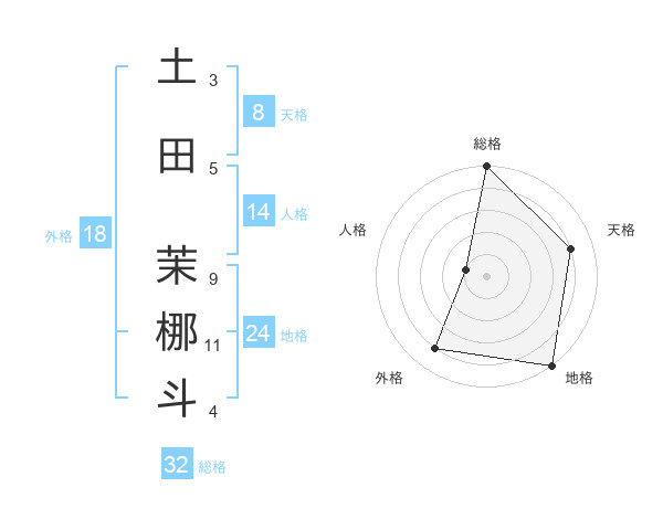土田 茉梛斗さんを姓名の画数から五運を鑑定