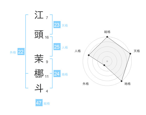 江頭 茉梛斗さんを姓名の画数から五運を鑑定