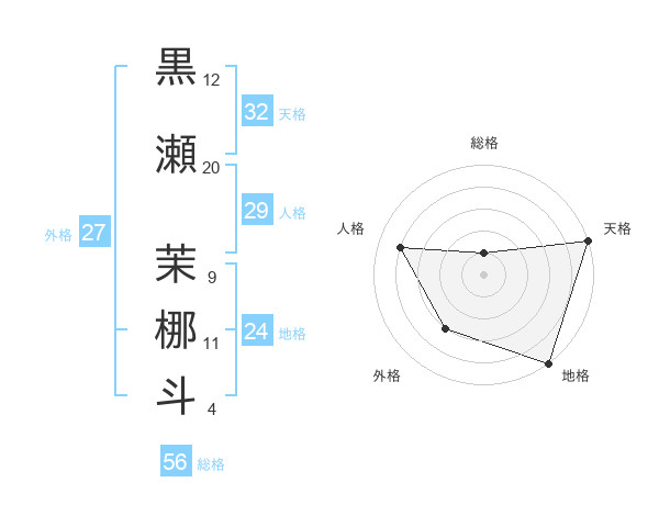 黒瀬 茉梛斗さんの天格は32画の5点!