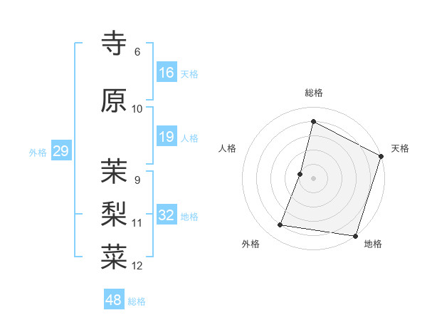 寺原 茉梨菜さんの総格は48画の4点!