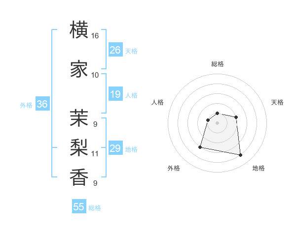 横家 茉梨香さんを姓名の画数から五運を鑑定