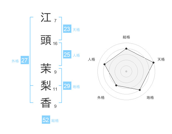 江頭 茉梨香さんを姓名の画数から五運を鑑定
