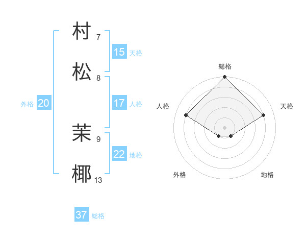 村松 茉椰さんの総格は37画の5点!