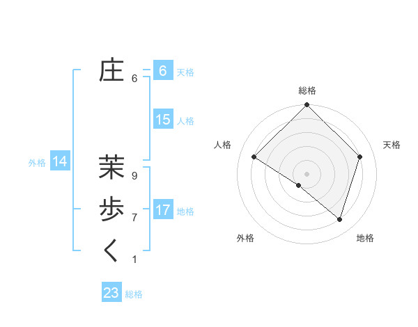 庄 茉歩くさんを姓名の画数から五運を鑑定
