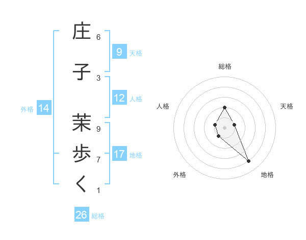 庄子 茉歩くさんを姓名の画数から五運を鑑定