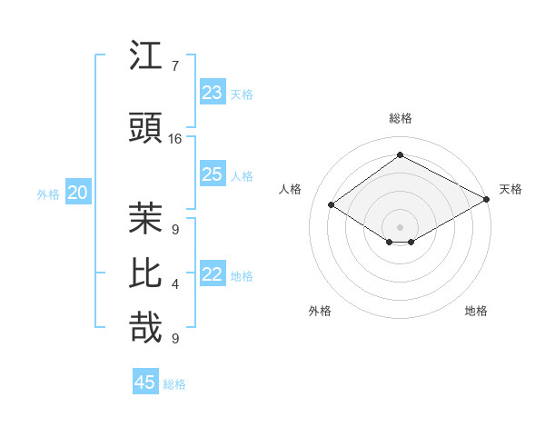 江頭 茉比哉さんを姓名の画数から五運を鑑定