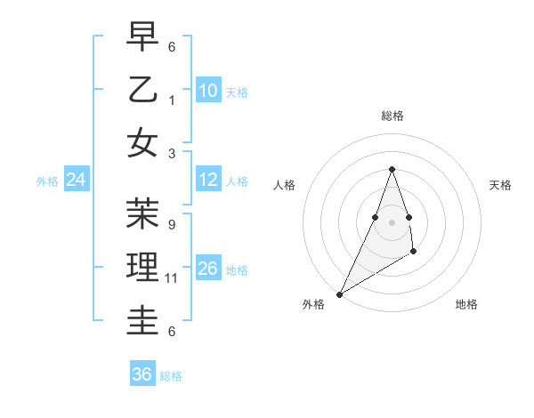 早乙女 茉理圭さんの総格は36画の3点!