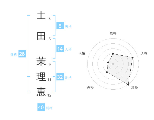 土田 茉理恵さんを姓名の画数から五運を鑑定