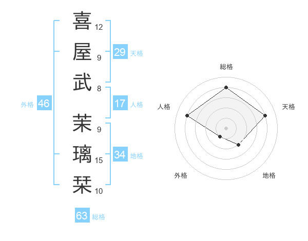 喜屋武 茉璃栞さんの総格は63画の4点!