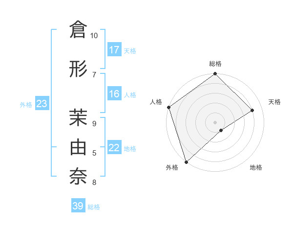 倉形 茉由奈さんの外格は23画の5点!