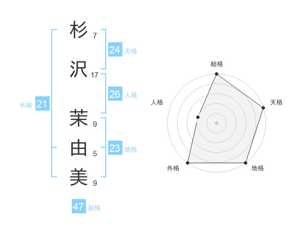 杉沢 茉由美さんを姓名の画数から五運を鑑定