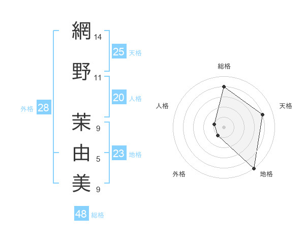 網野 茉由美さんの天格は25画の4点!