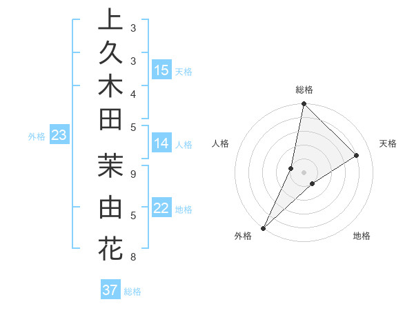 上久木田 茉由花さんを姓名の画数から五運を鑑定