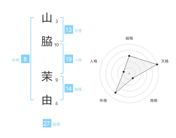 山脇 茉由さんを姓名の画数から五運を鑑定