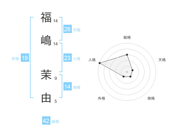 福嶋 茉由さんの総格は42画の3点!