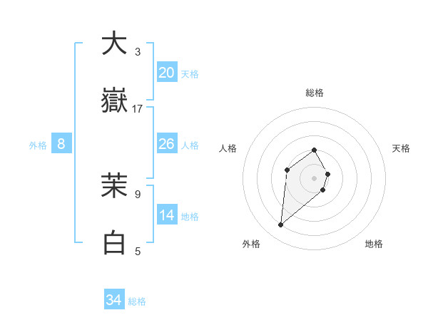 大嶽 茉白さんを姓名の画数から五運を鑑定