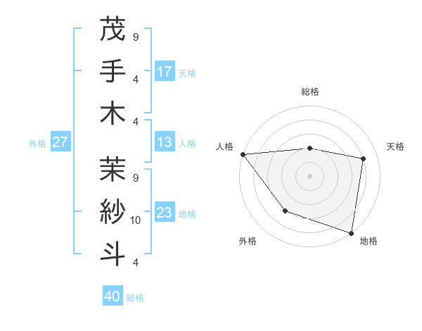茂手木 茉紗斗さんの天格は17画の4点!