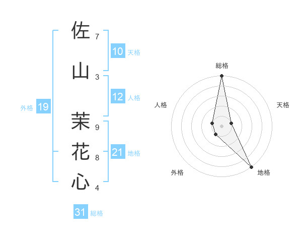 佐山 茉花心さんを姓名の画数から五運を鑑定