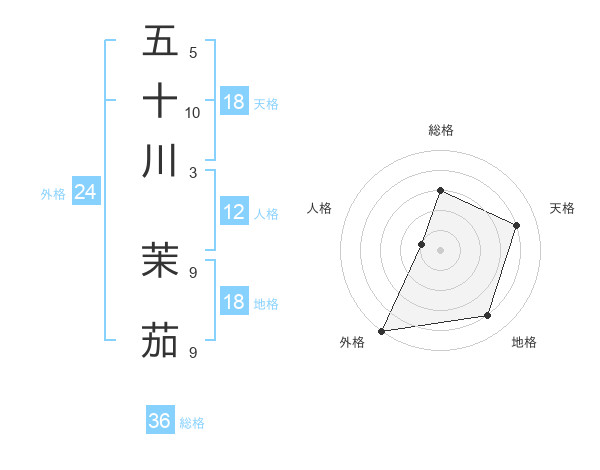 五十川 茉茄さんを姓名の画数から五運を鑑定
